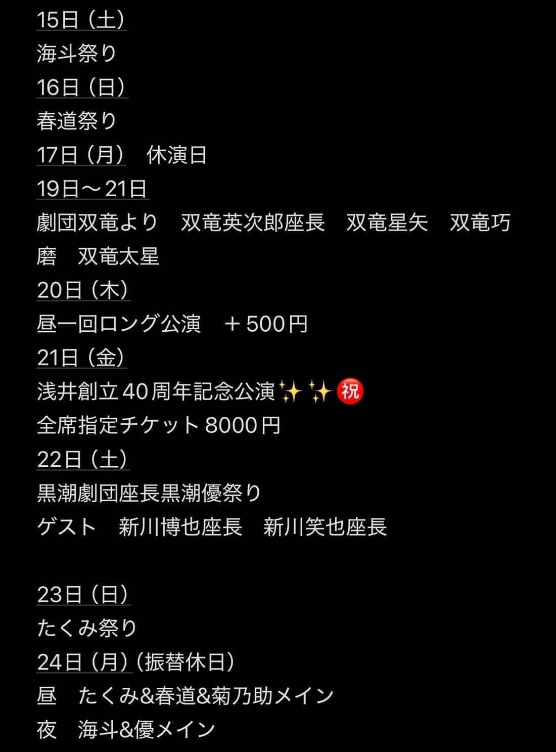 ★21日(金)浅井創立40周年記念公演 昼一回ロング公演