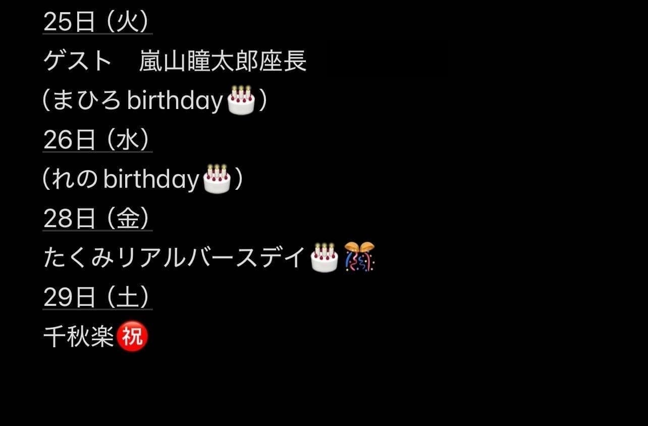 【休演日】21日(日)夜、22日(月)~31日(水)